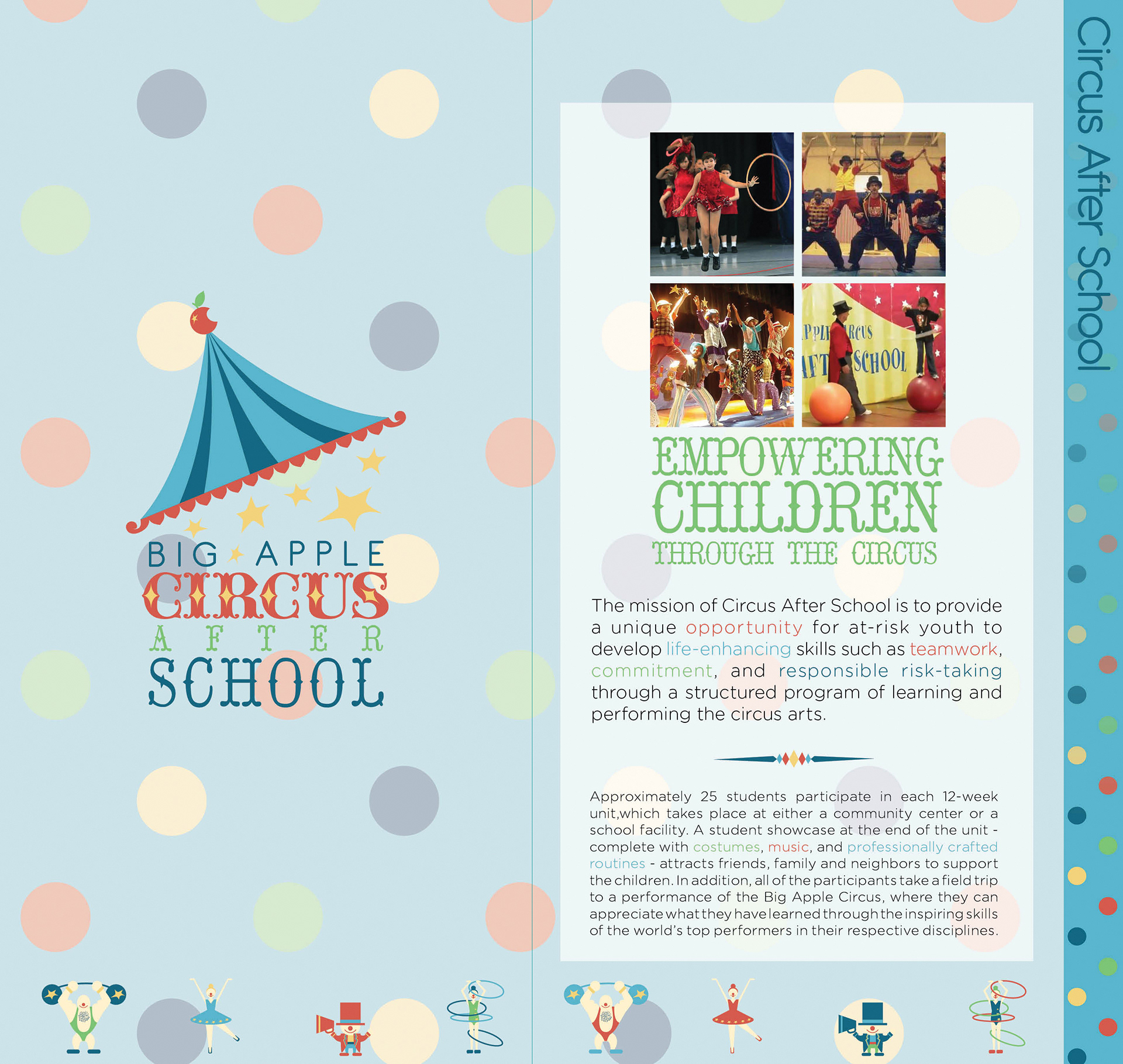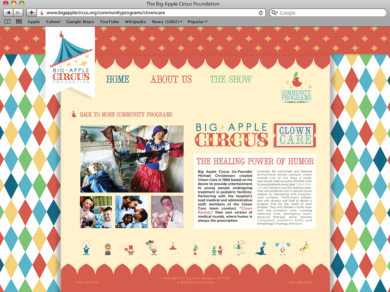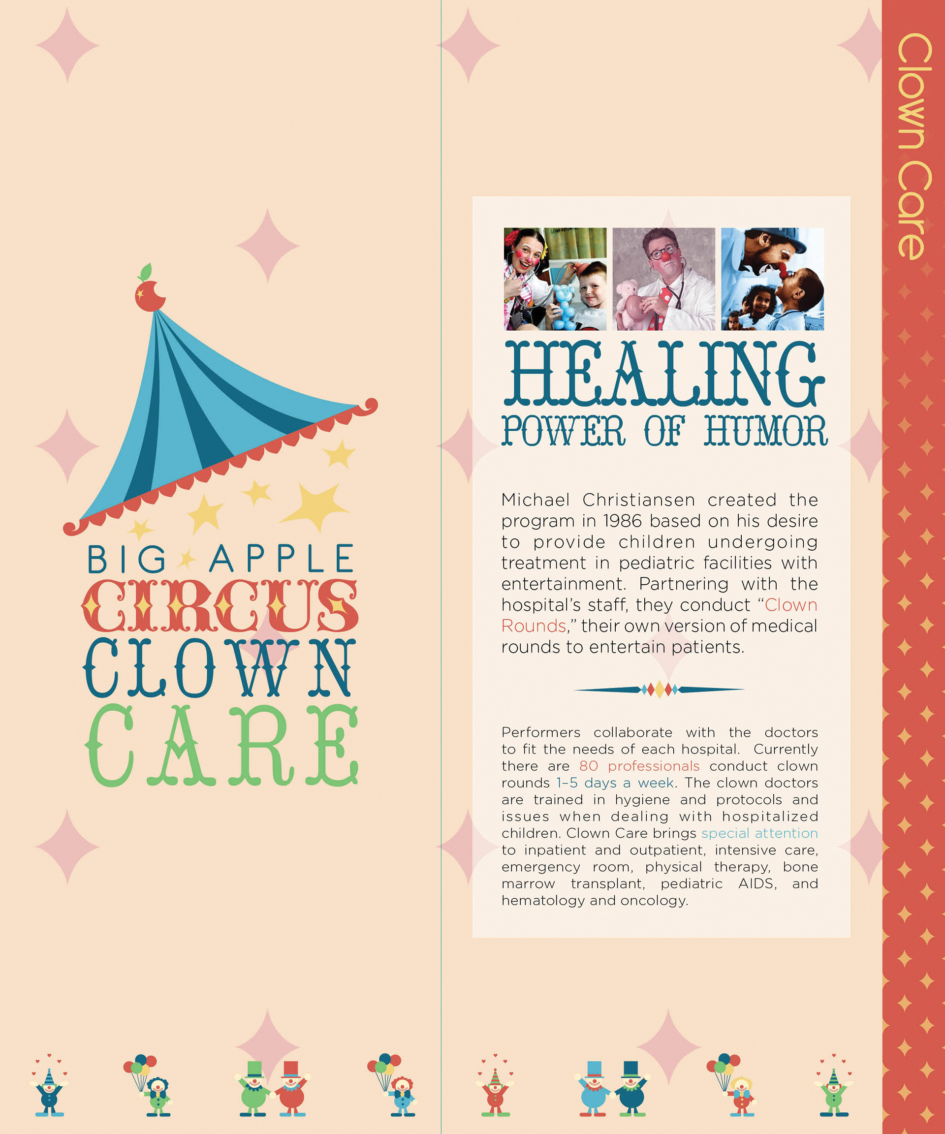 Promotional design and branding system for the Big Apple Circus’ logo and brochure showing information about the company in print and web design.